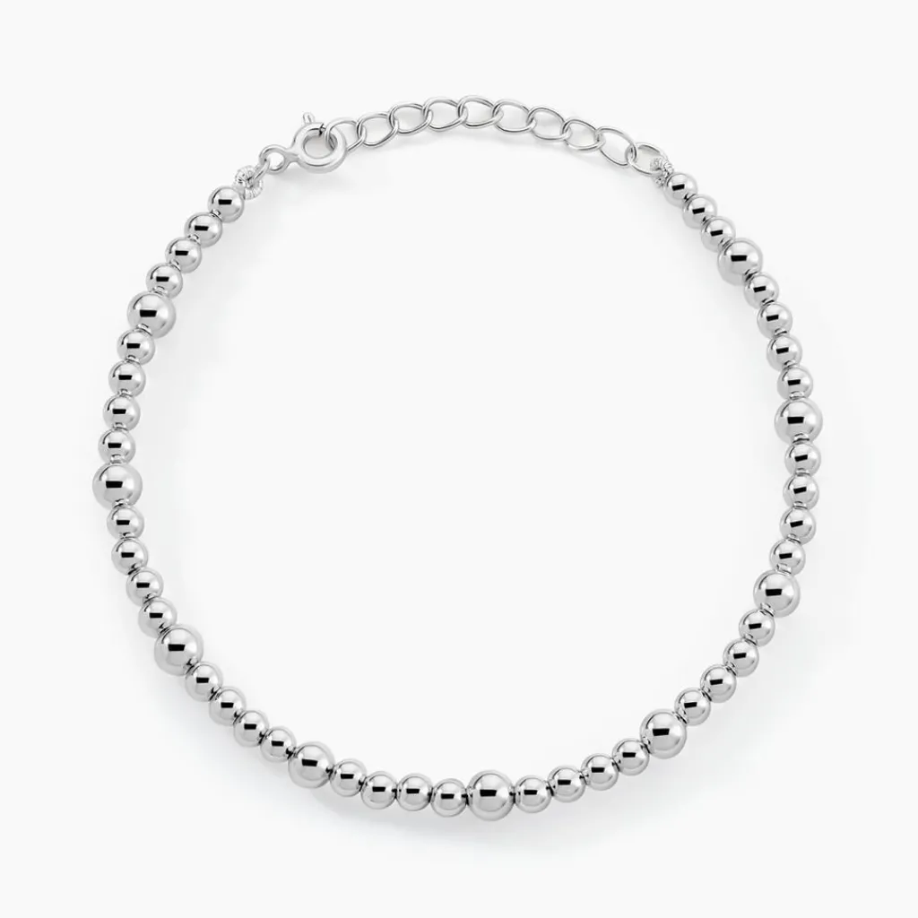 Bracelet Argent Blanc 925/1000 Maille Boules Largeur 1mm 16+3cm