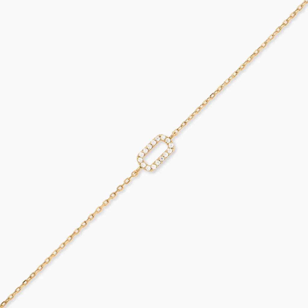 Bracelet Plaqué Or Jaune Maillon Pavage Oxydes De Zirconium Maille Forcat 16+3Cm