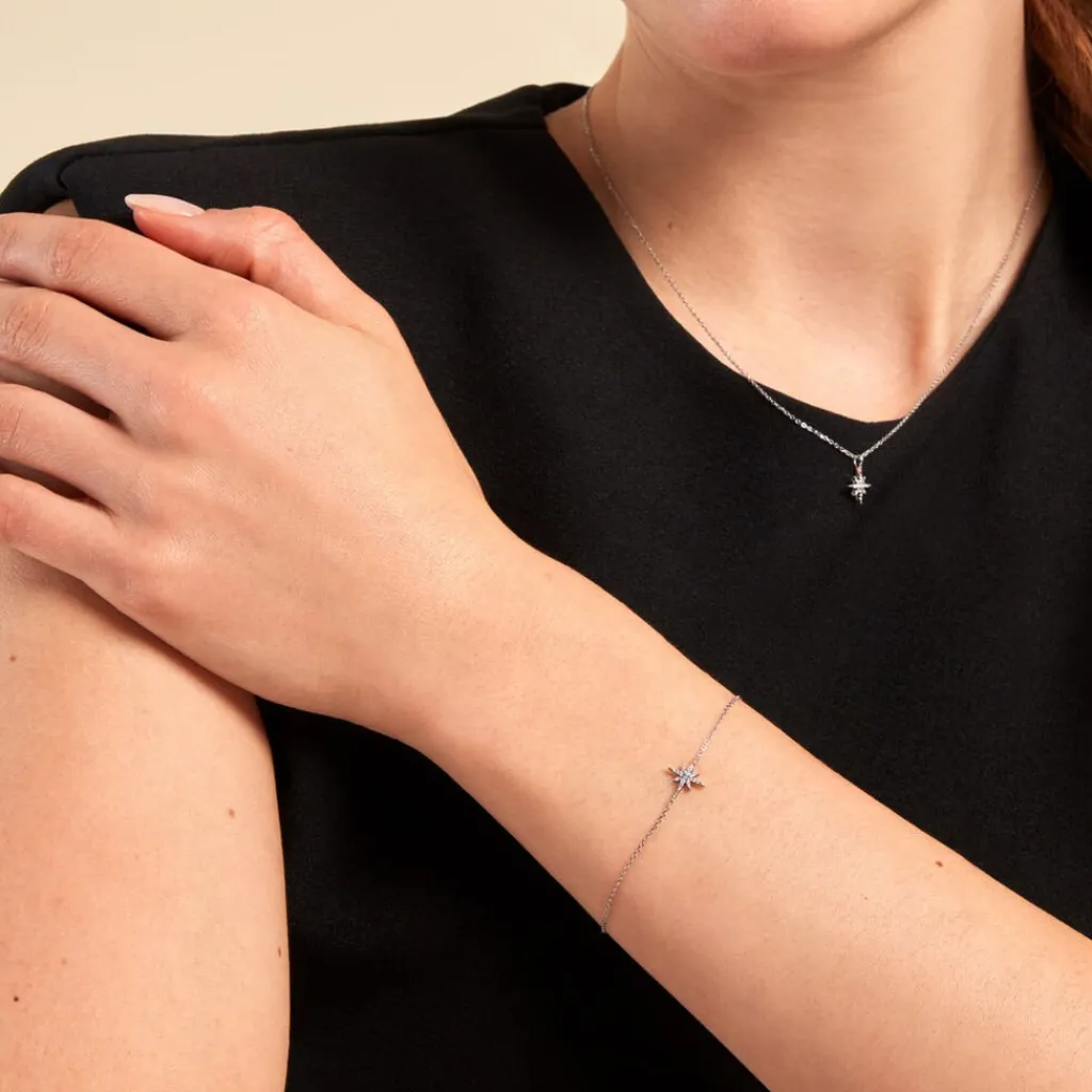 Bracelet Argent Blanc 925/1000 étoile Pavage Oxydes De Zirconium Maille Forçat 16+3cm