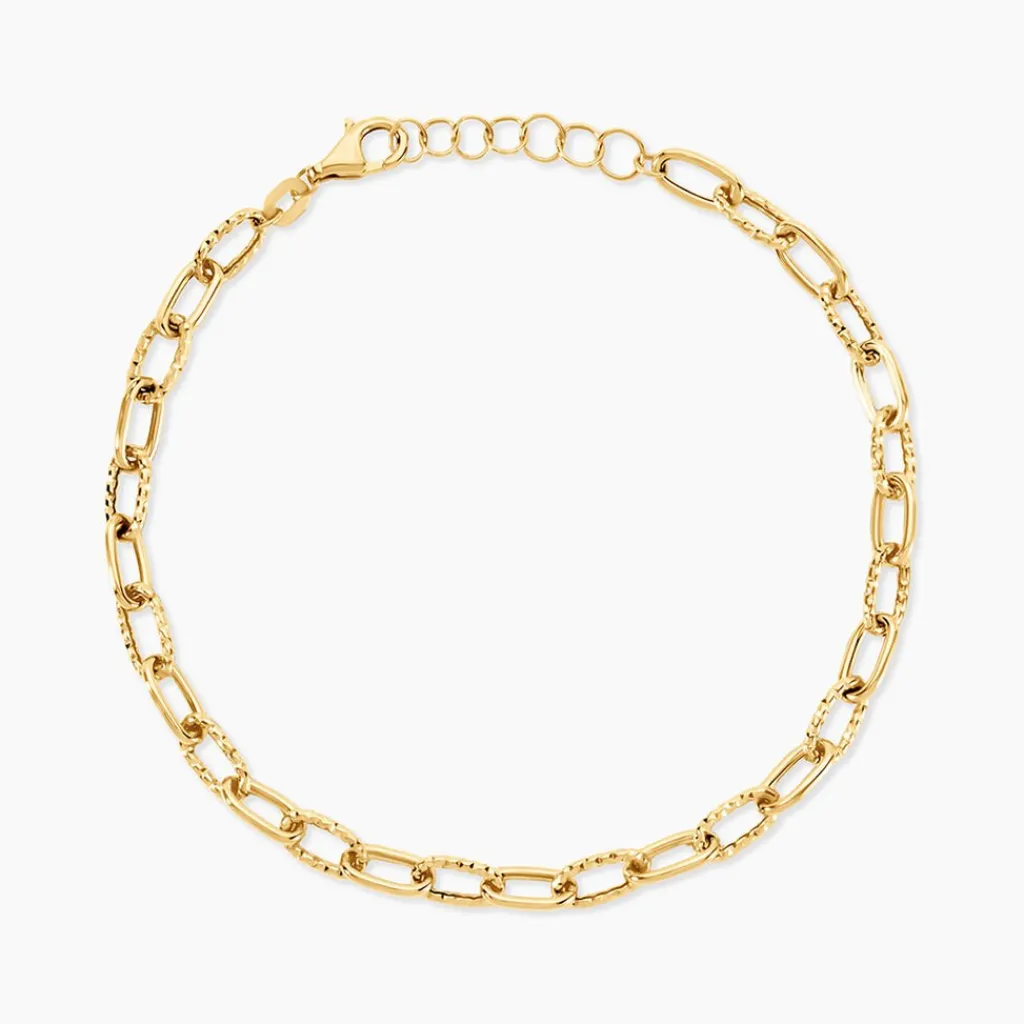 Bracelet Or Jaune 375/1000 Maillons Maille Fantaisie Largeur 4,5Mm Longueur 16+2Cm