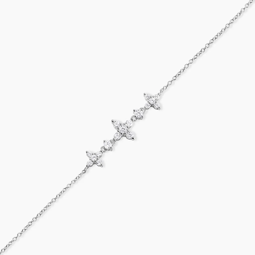 Bracelet Argent 925/1000 Floral Oxydes De Zirconium Maille Forcat 19cm