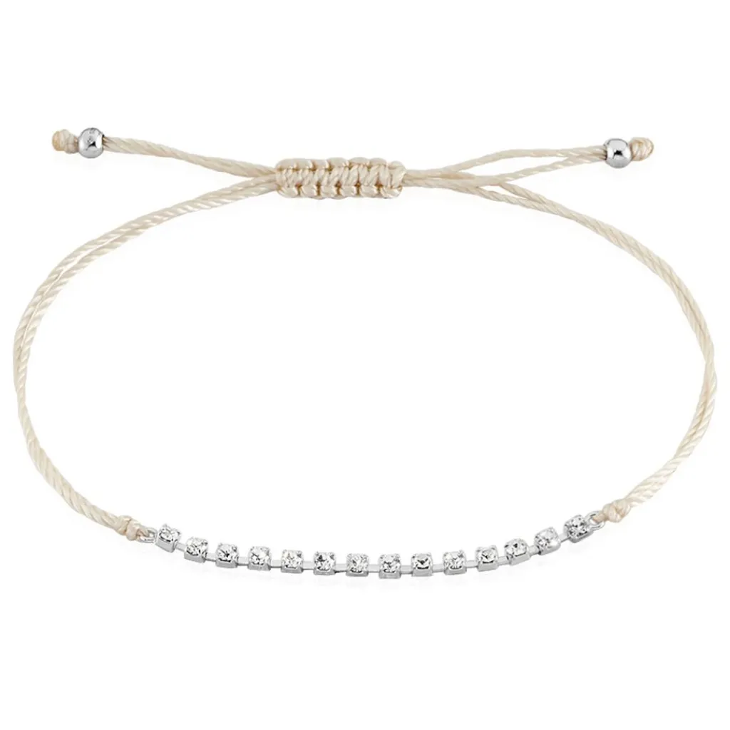 Bracelet Argent 925/1000 Oxydes Cordon Ajustable Beige 16.5+3cm