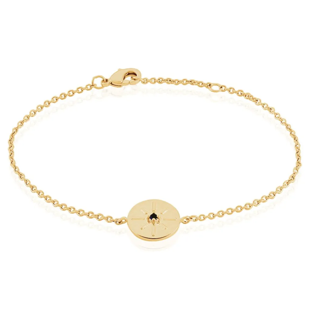 Bracelet Plaqué Or Jaune Forme Ronde Motif Astral Pierre Bleue 18cm
