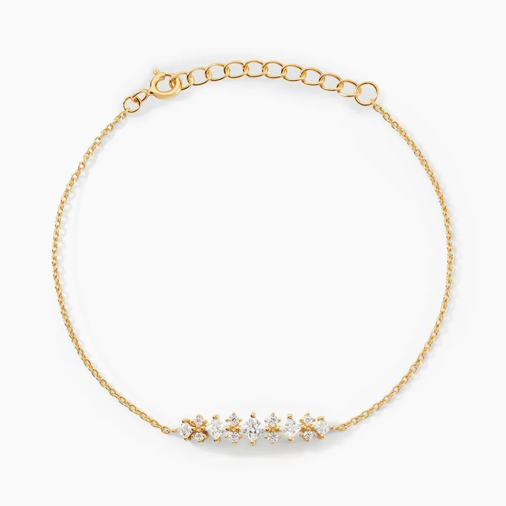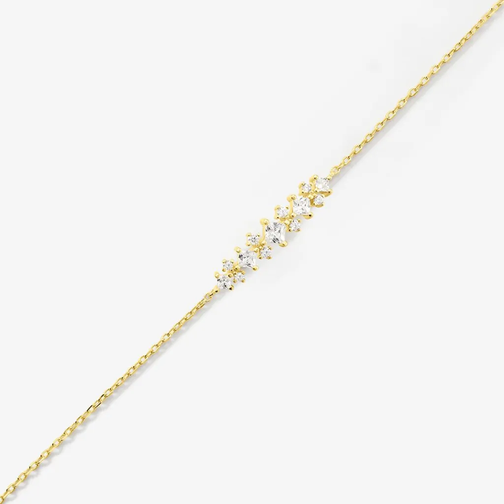 Bracelet Argent Jaune 925/1000 Oxydes De Zirconium Carres 16+3cm