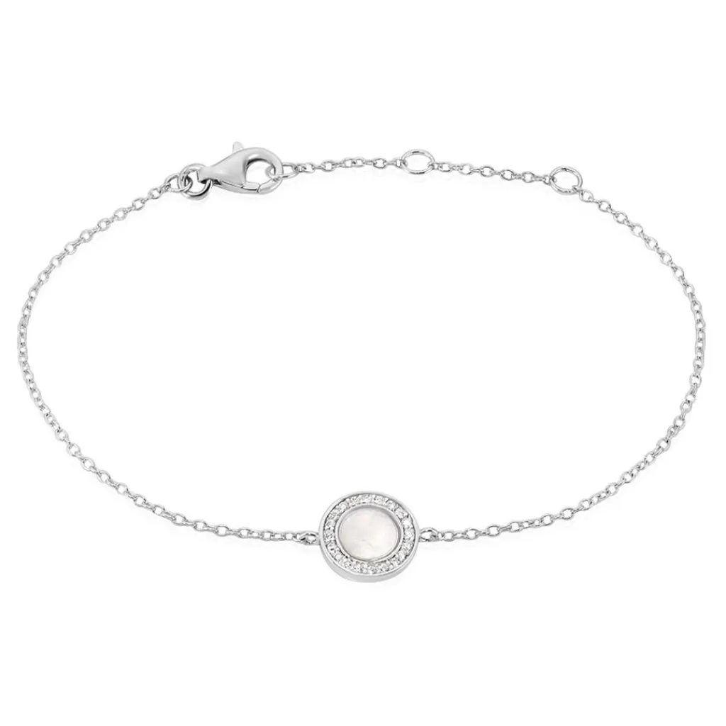 Bracelet Argent 925/1000 nawala Pastille Nacre Blanche Entourage Oxydes De Zirconium 18.5cm