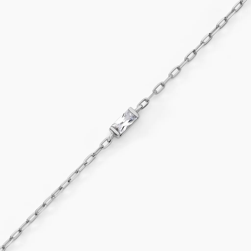 Bracelet Argent Blanc 925/1000 Oxyde De Zirconium Taille Baguette Maille Cheval Largeur 1.7mm 16+3cm