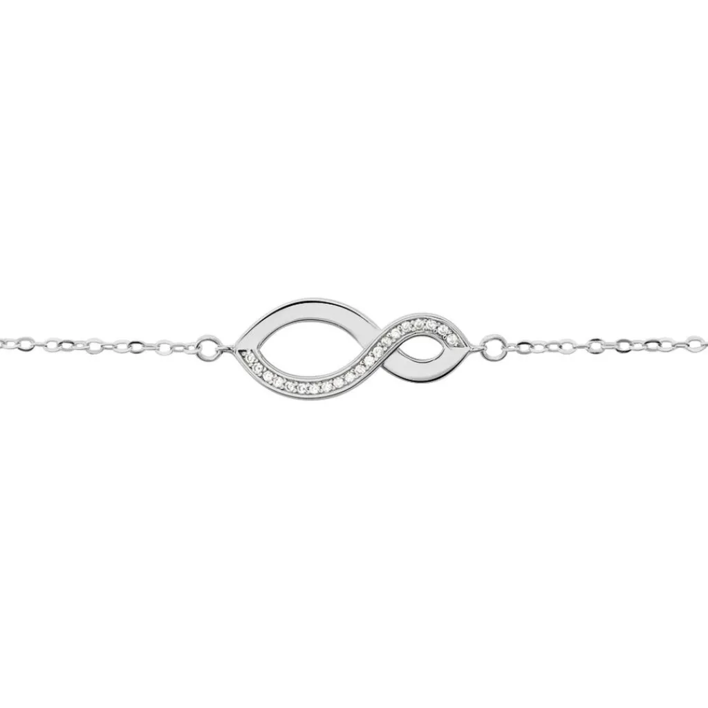 Bracelet Argent 925/1000 odile Motif Infini Oxydes De Zirconium Chaine Maille Forcat 18cm