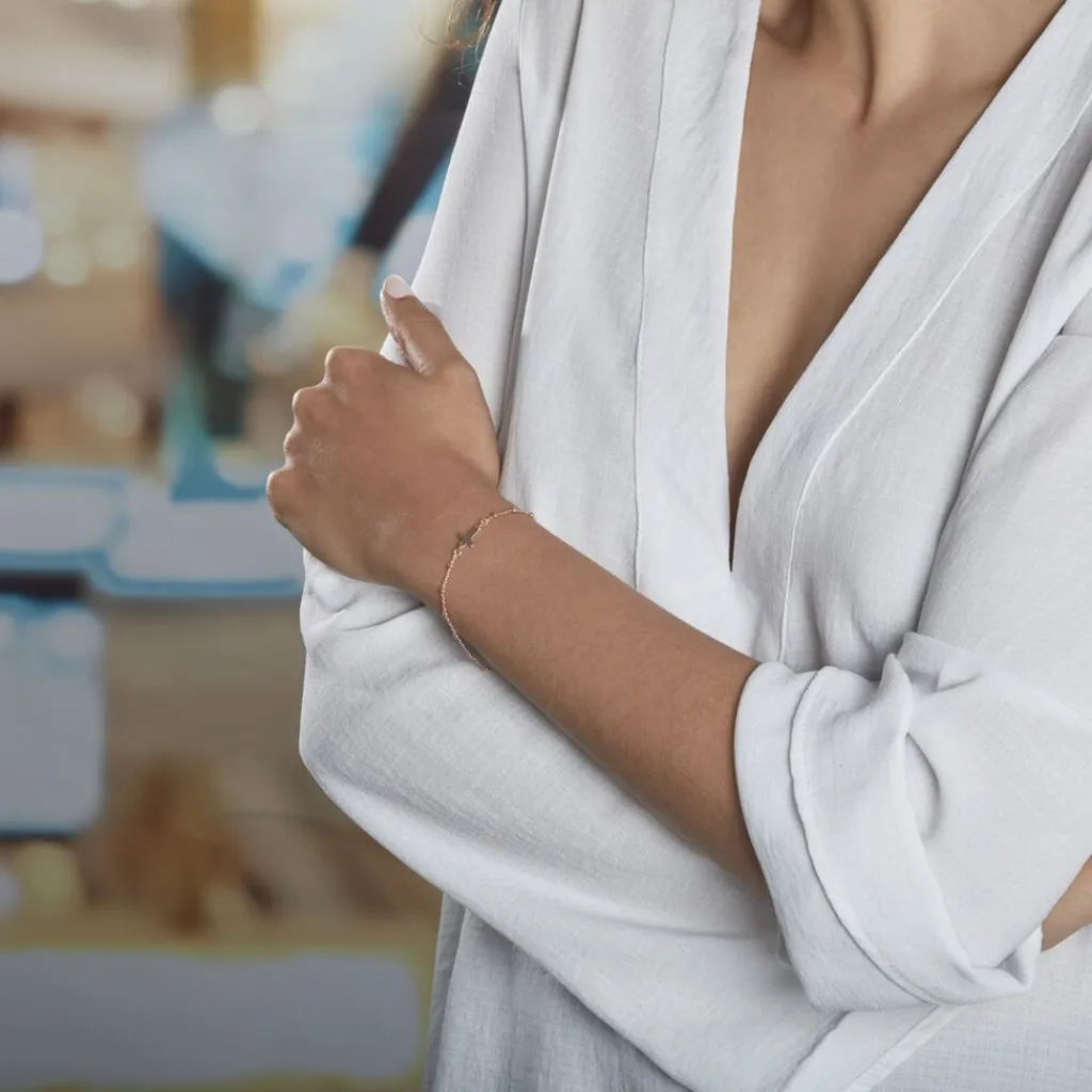 Bracelet Argent Rose 925/1000 Croix Maille Boules 18cm