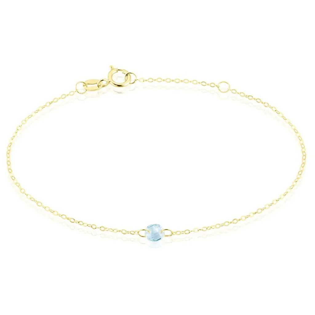 Bracelet Or Jaune 375/1000 Pampille Oxyde De Zirconium Bleu Maille Forcat 16/18cm