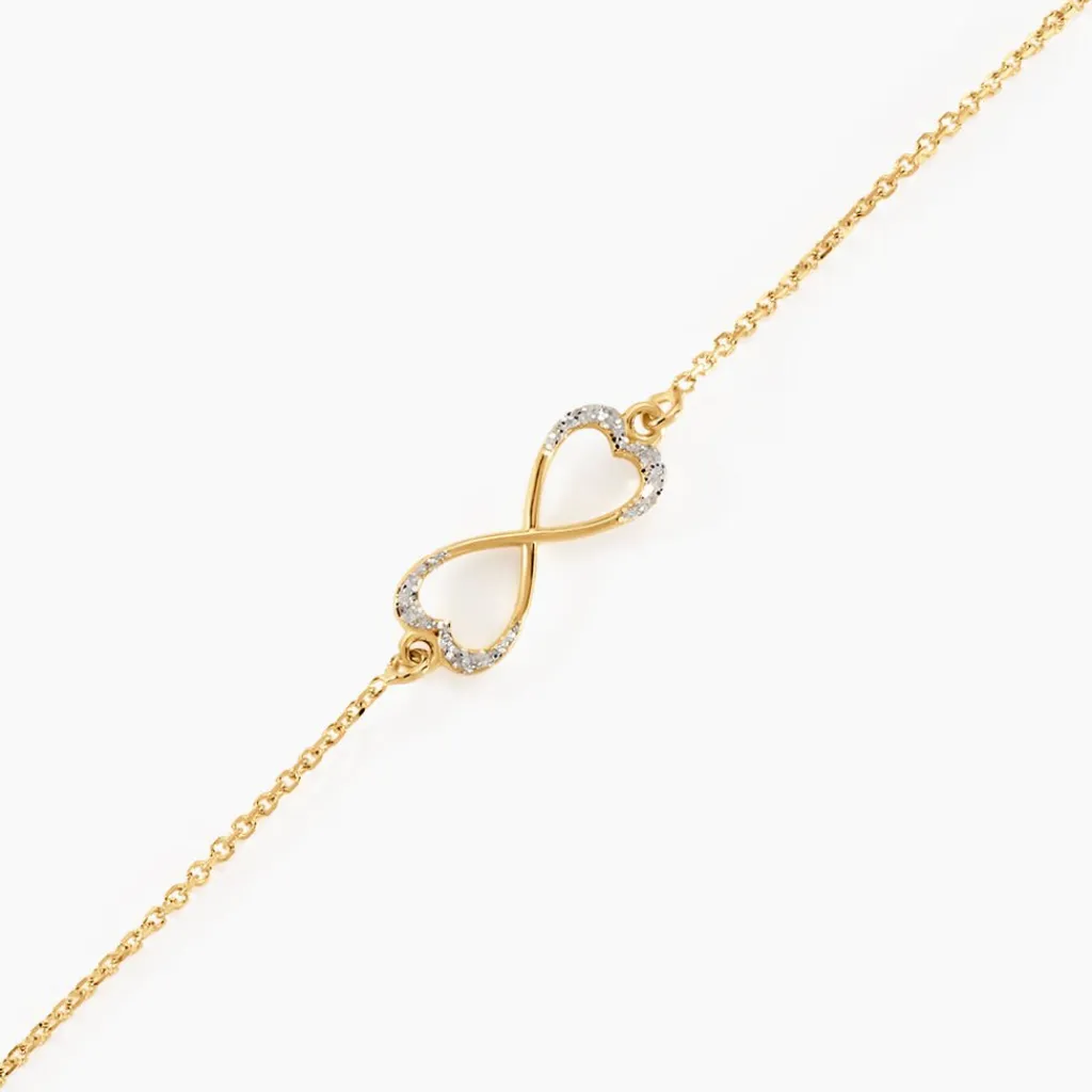 Bracelet Or Jaune 375/1000 Infini Glitter Argente Maille Jaseron 16+2cm