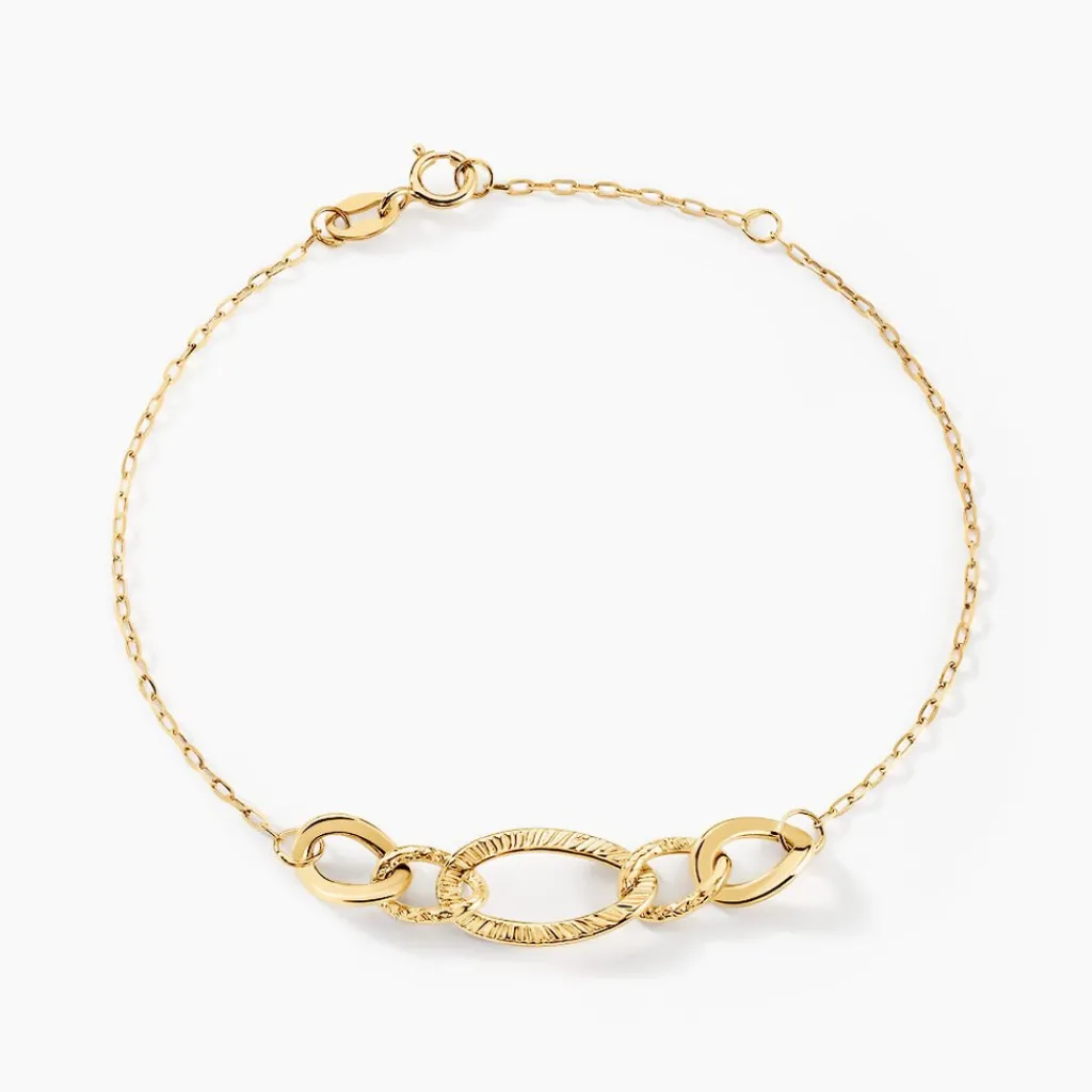 Bracelet Or Jaune 750/100 Maillons Ovales Marteles Maille Forcat 16+2cm