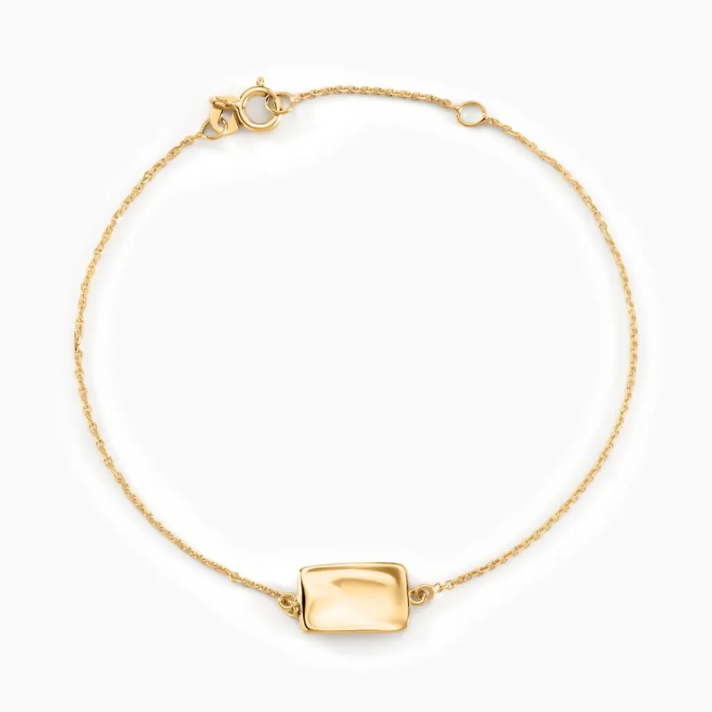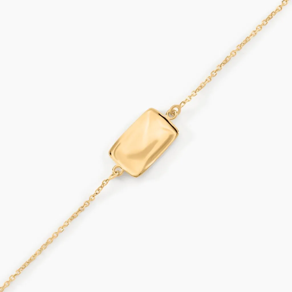 Bracelet Or Jaune 375/1000 Plaque Rectangle Martelee 12mm X 8mm Maille Jaseron 16+2cm