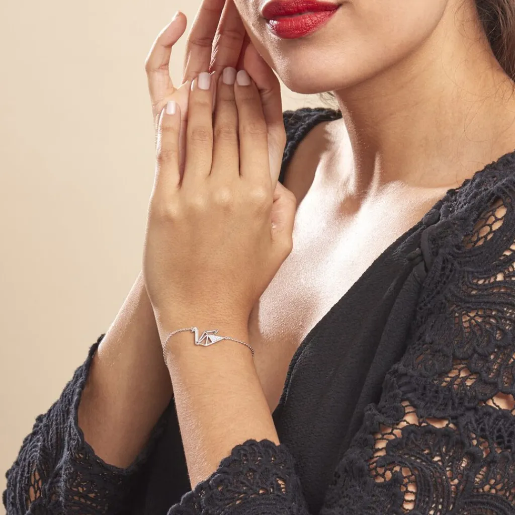 Bracelet Argent Blanc 925/1000 Cygne Oxydes De Zirconium 18.5cm