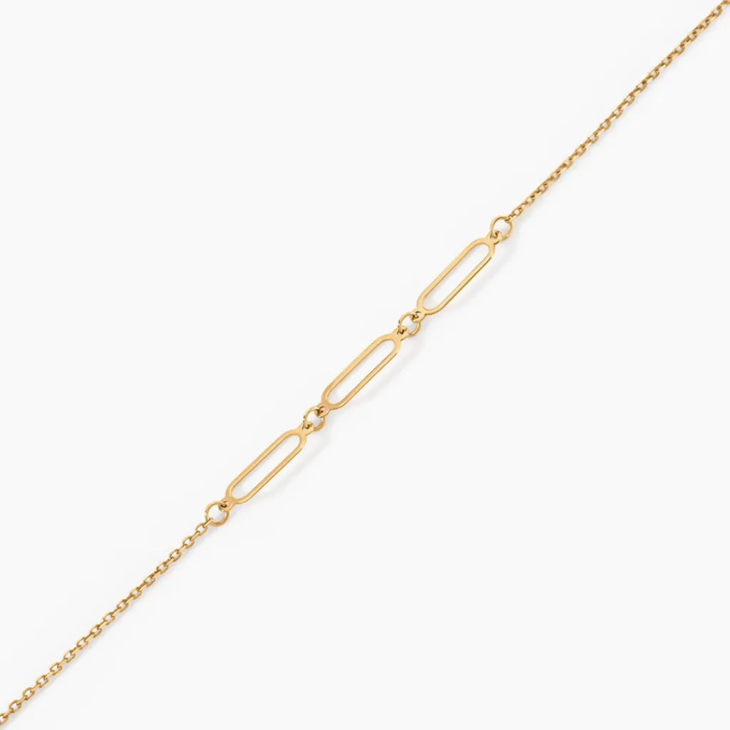 Bracelet Or Jaune 375/1000 Trilogie Maillons Ovales Maille Forcat 16+2Cm
