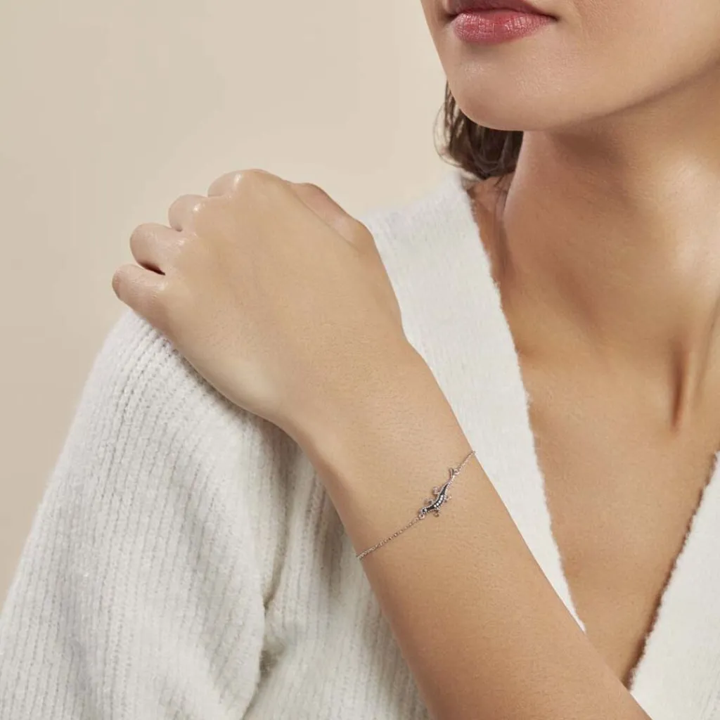 Bracelet Argent 925/1000 oya Lezard Ruthenium Oxydes De Zirconium 18cm