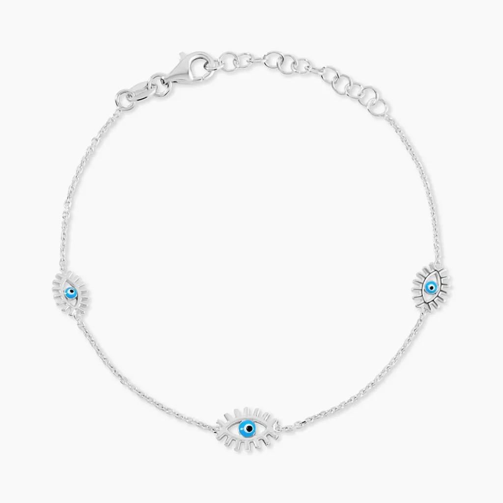 Bracelet Argent Blanc 925/1000 艙il Email Bleu Maille Forcat 16+3cm