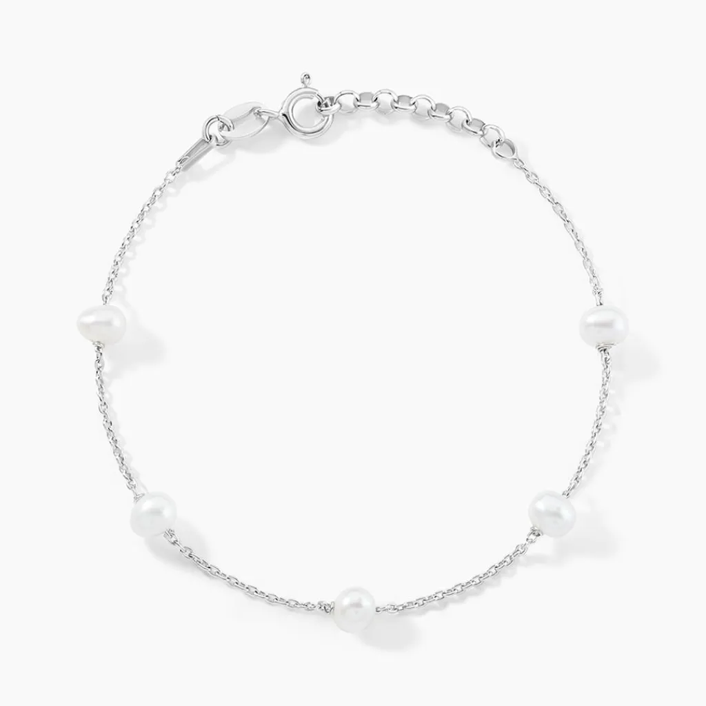 Bracelet Argent Blanc 925/1000 Perles De Culture 19cm