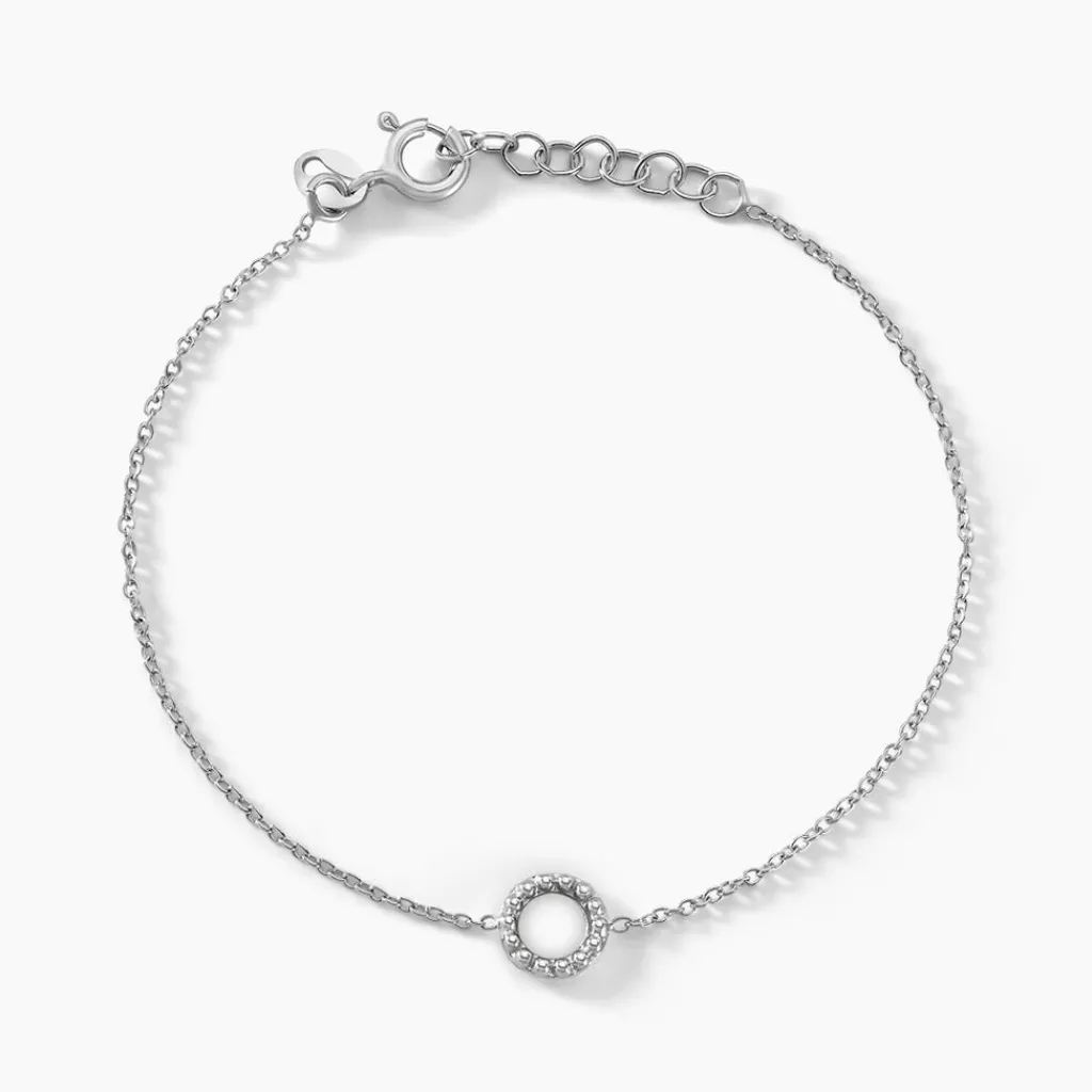 Bracelet Argent Blanc 925/1000 Cercle Ajoure Effet Perle Maille Forcat 18cm