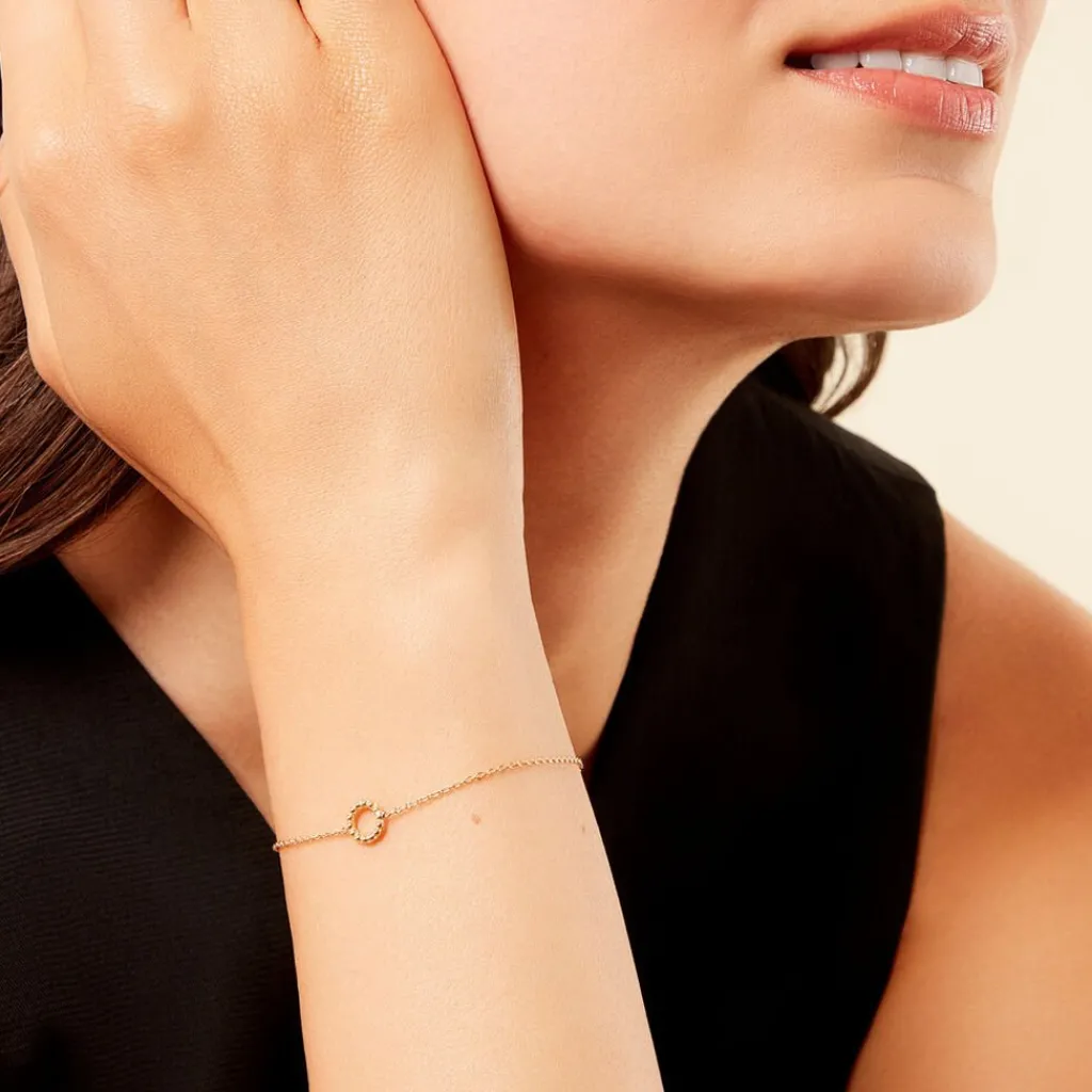 Bracelet Argent Jaune 925/1000 Cercle Ajoure Effet Perle Maille Forcat 18cm