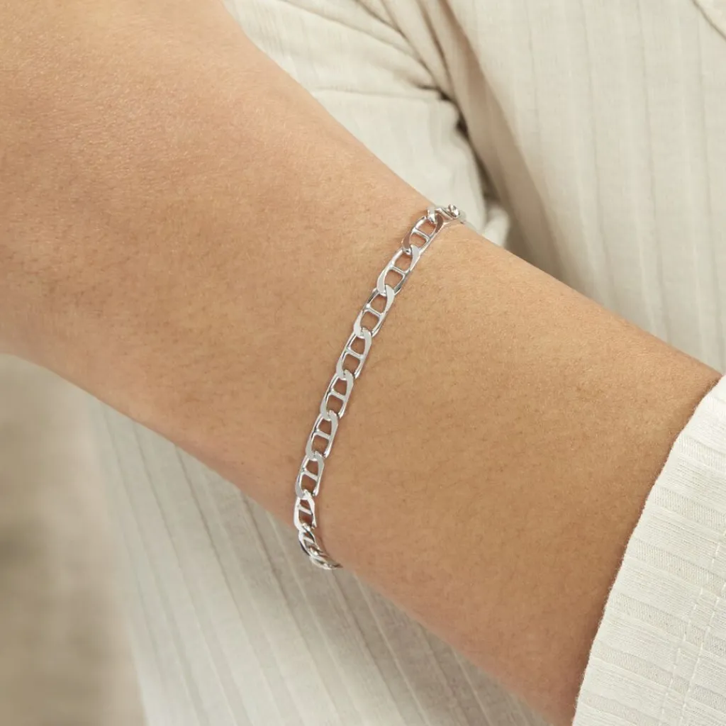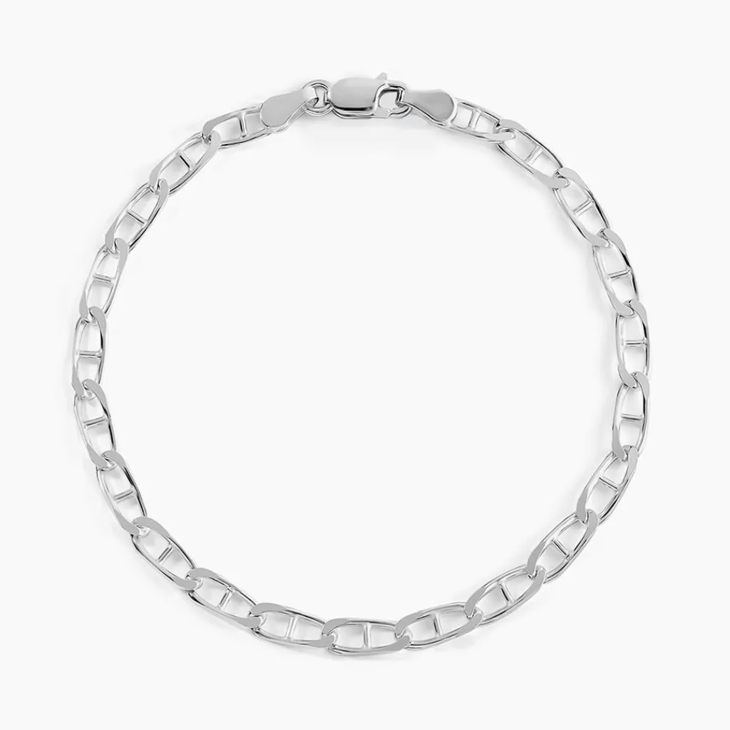 Bracelet Argent Blanc 925/1000 Maille Marine Plate 3mm 18cm