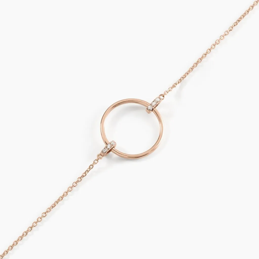 Bracelet Or Rose 375/1000 Cercle Pavage Diamants 18.5cm