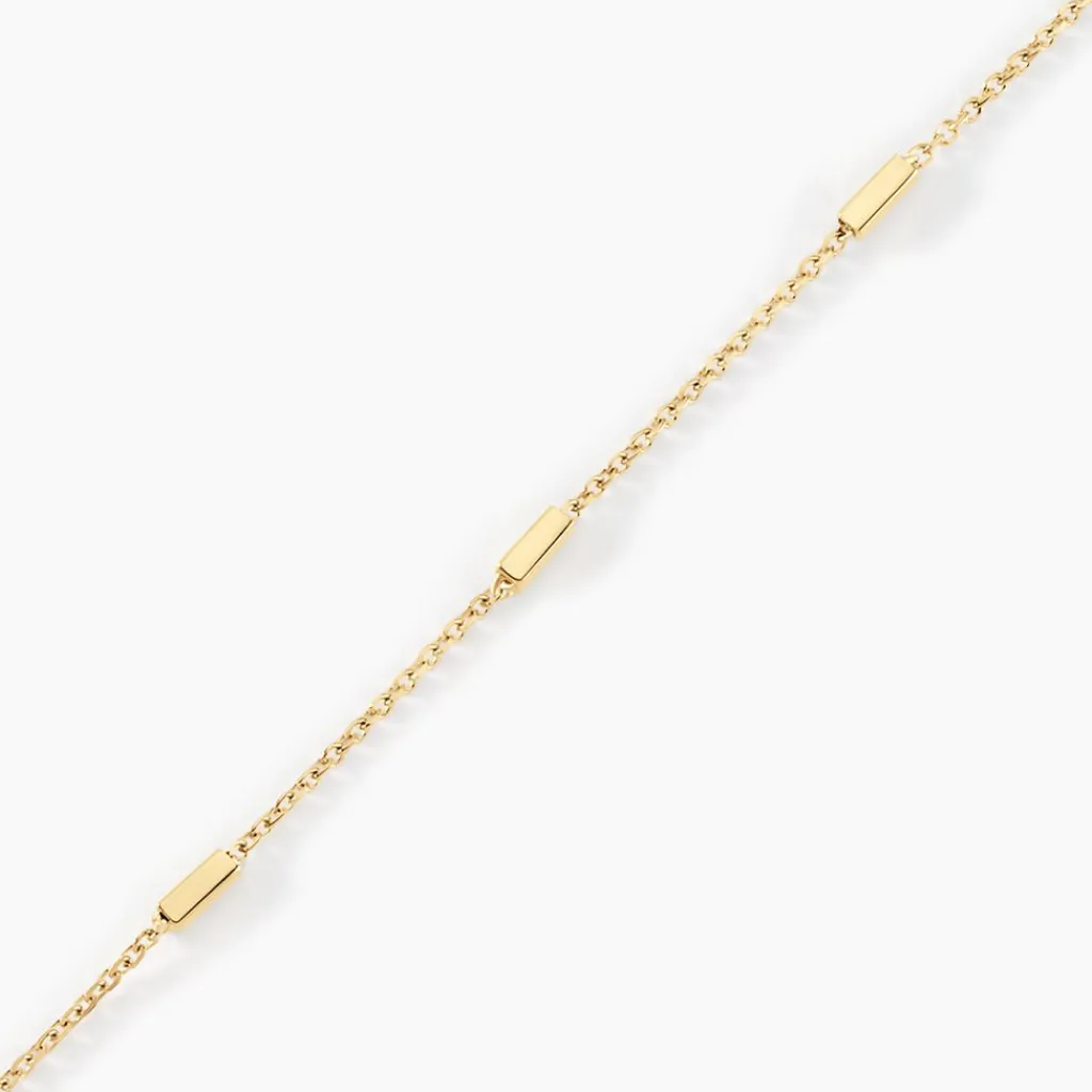 Bracelet Or Jaune 375/1000 rain Alternance De Barrettes Et Chaine Maille Jaseron 16+2cm