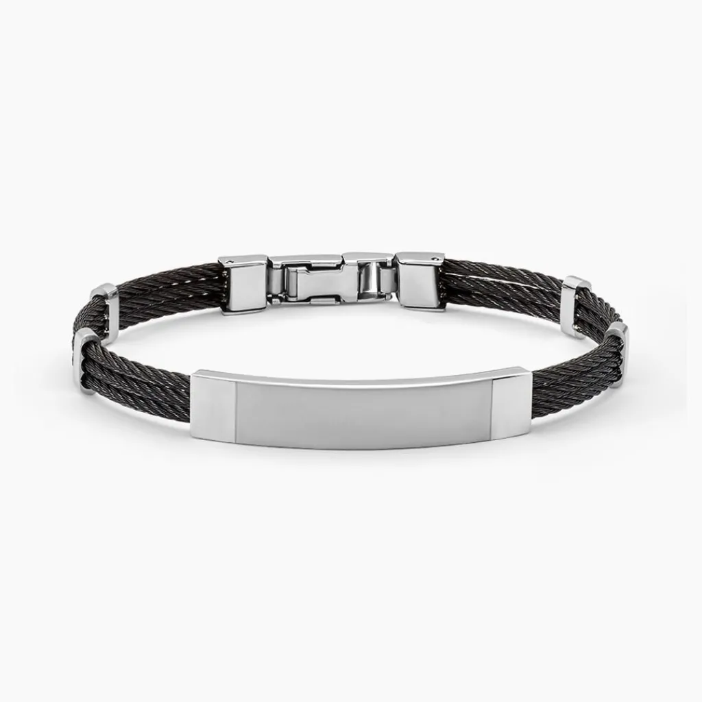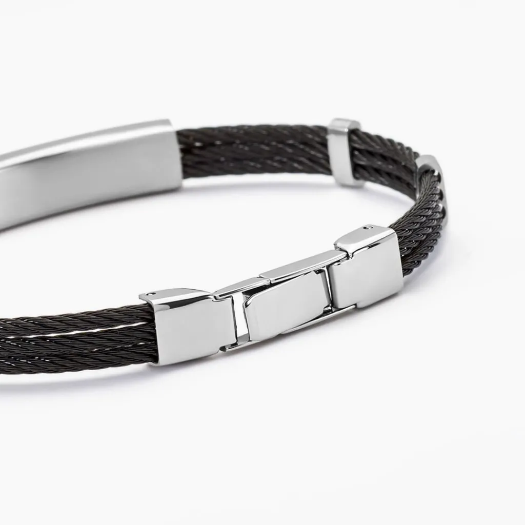 Bracelet Acier Inoxydable Blanc Plaque Et Cable Noir Acier Inoxydable Blanc Diametre 68mm