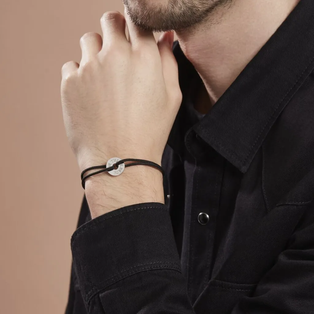 Bracelet Argent Blanc 925/1000 Cercle Gravé Je T’aime Papa Cordon Noir 19cm