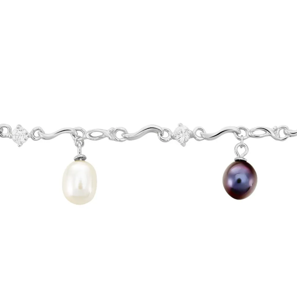 Bracelet Argent Blanc 925/1000 Perles De Culture Blanches Et Grises 7x9mm 18cm