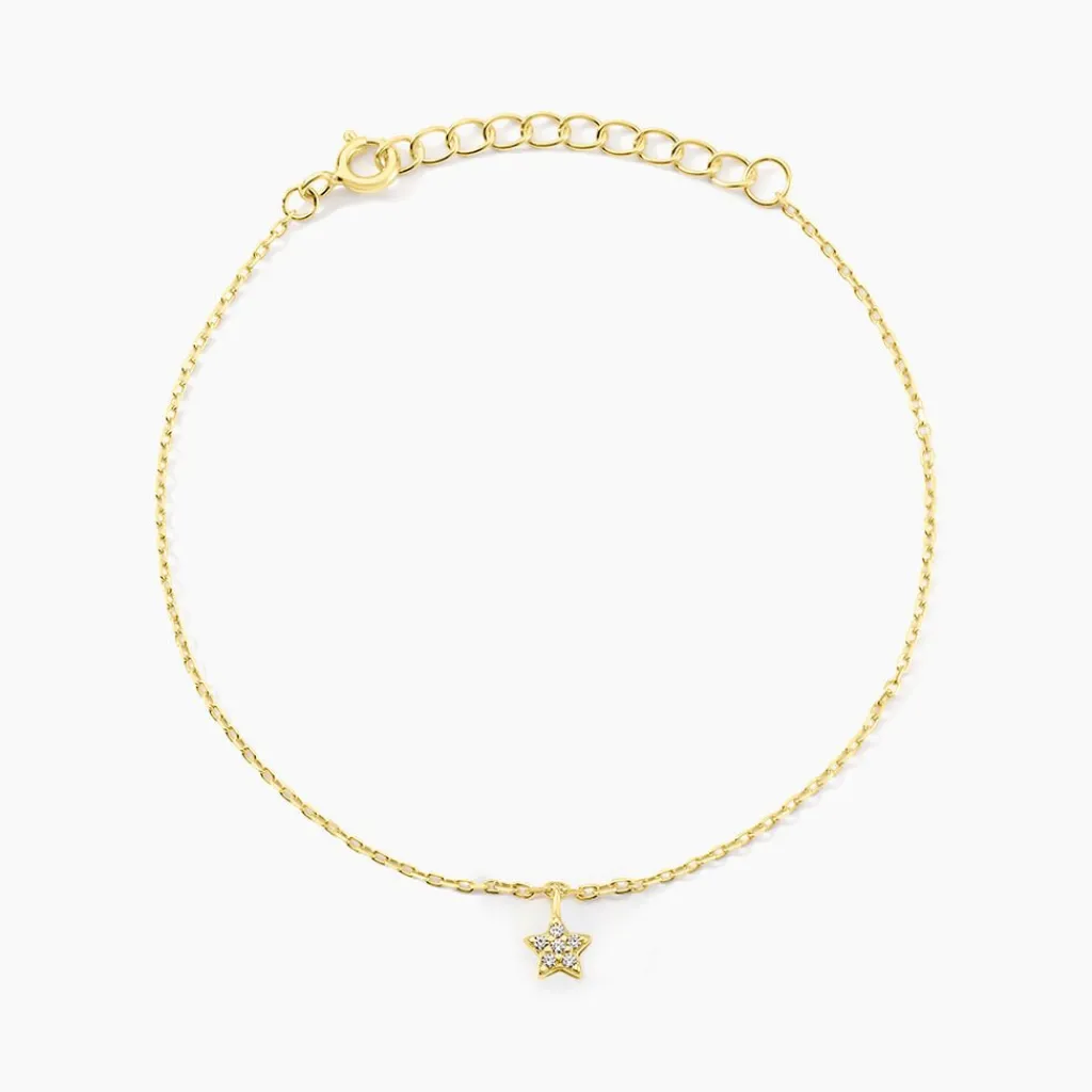 Bracelet Argent Jaune 925/1000 étoile Pavage Oxydes De Zirconium Maille Forçat 16+3cm