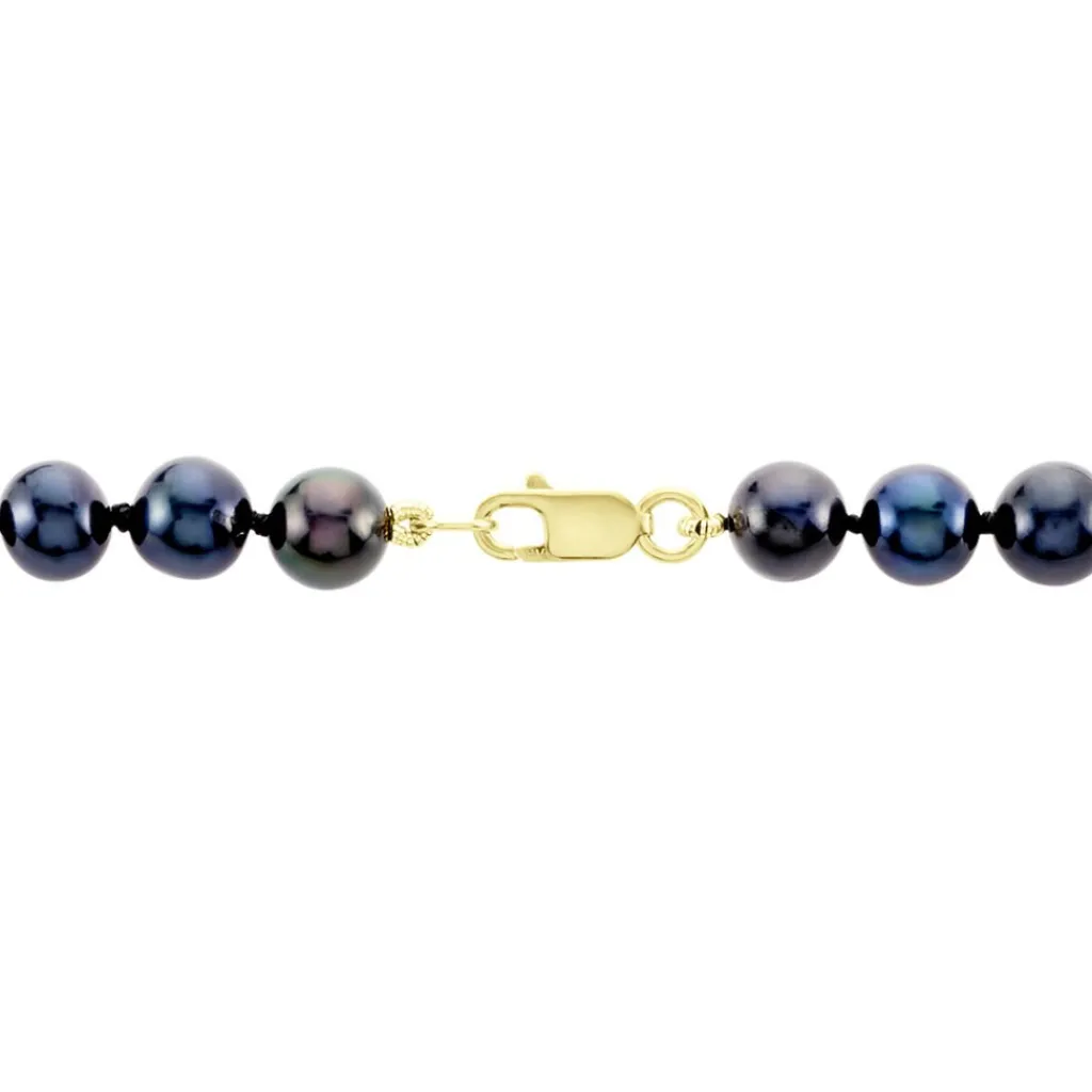 Bracelet Or Jaune 375/1000 Perles De Culture Baroques Nacre Noire 6.5/7mm 18cm