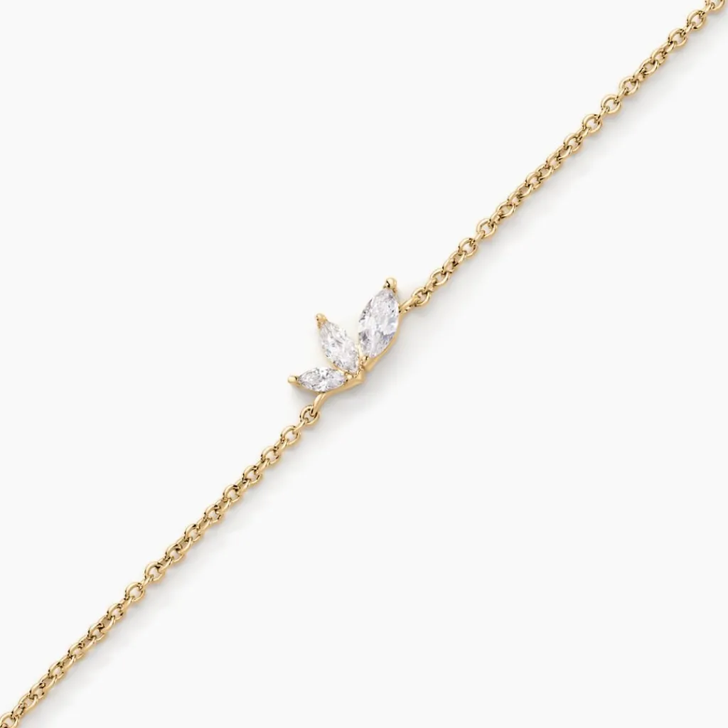 Bracelet Plaqué Or Jaune Multipierres Oxydes De Zirconium Serti 2 Griffes Taille Navette Maille Jaseron 16+2cm
