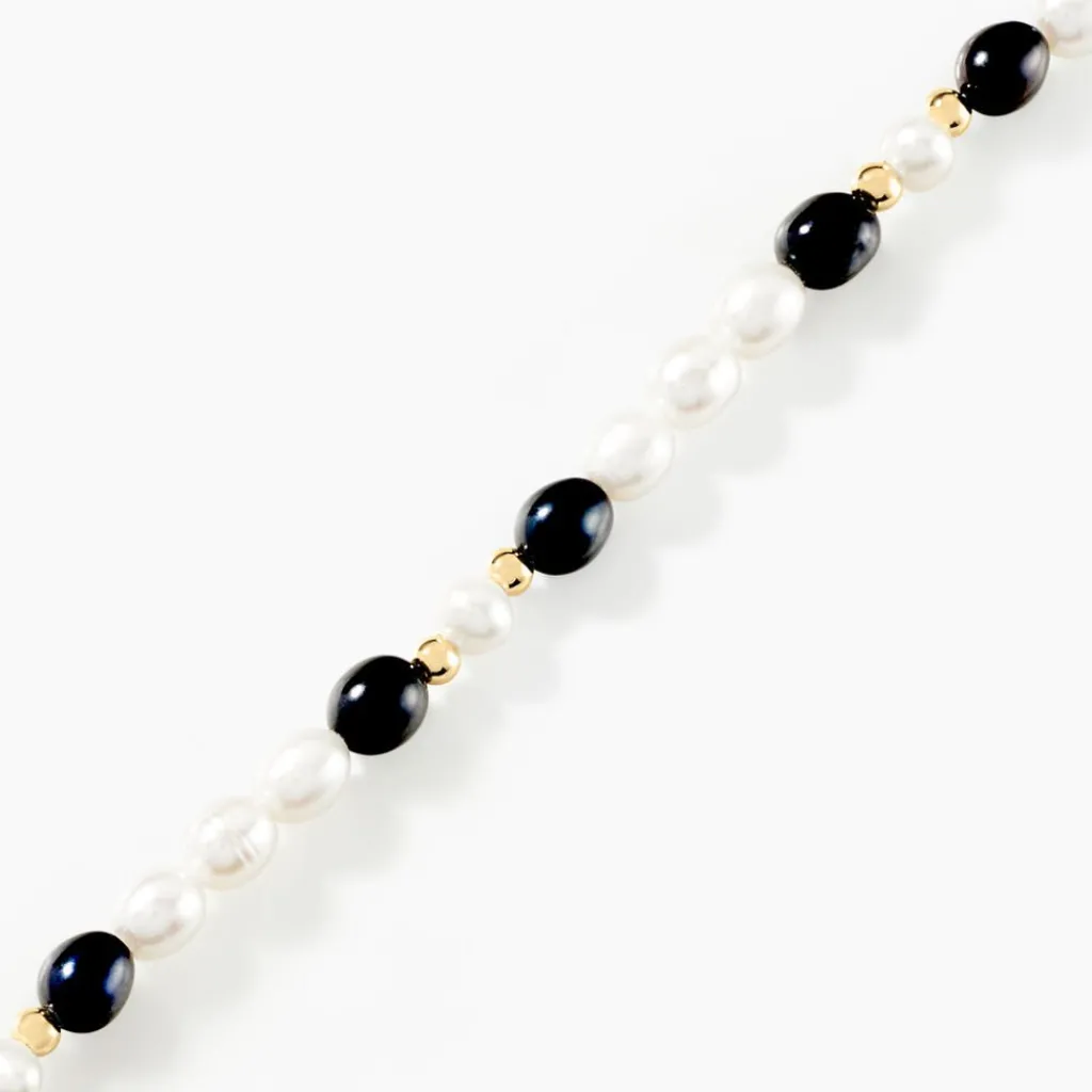 Bracelet Or Jaune 375/1000 Perles De Culture 3.5/4mm Nacres Et Nacres Noires 18cm