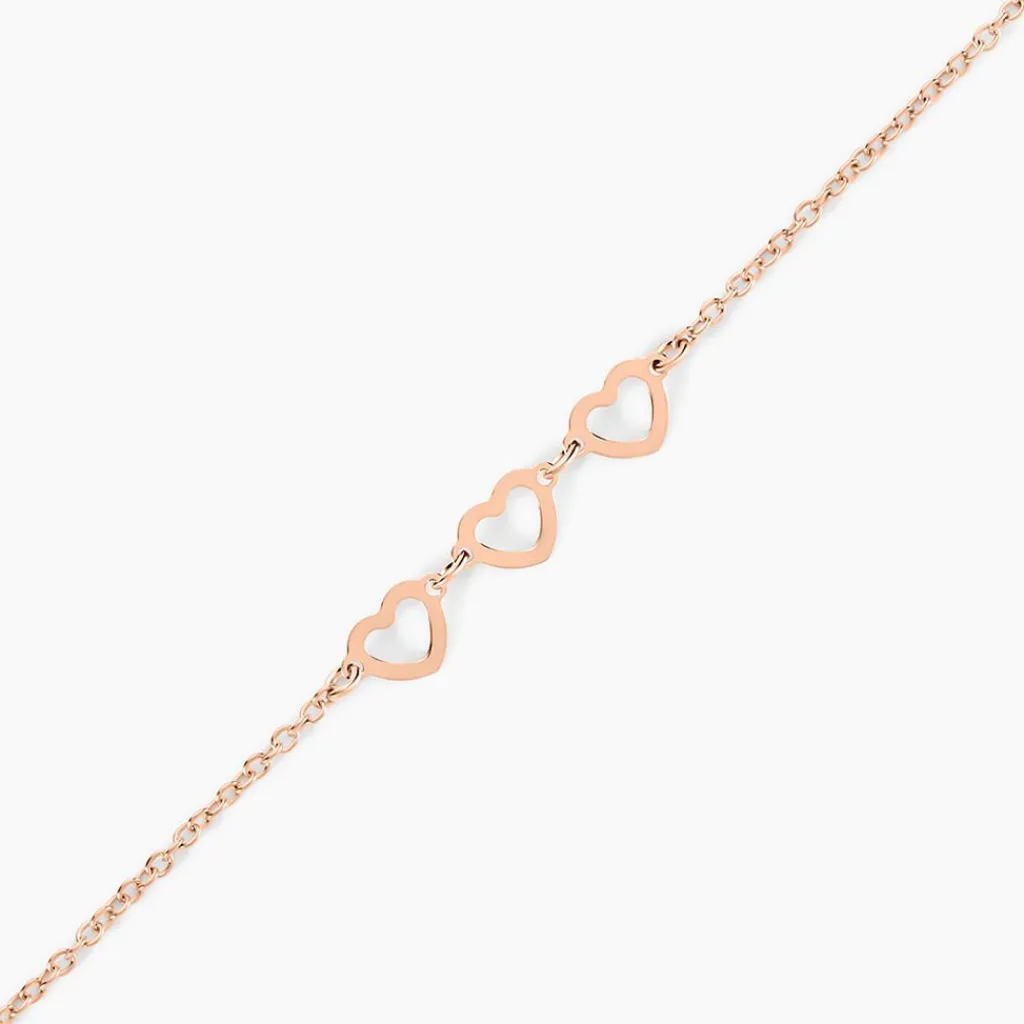 Bracelet Argent Rose 925/1000 Triple C艙urs Maille Jaseron 18cm