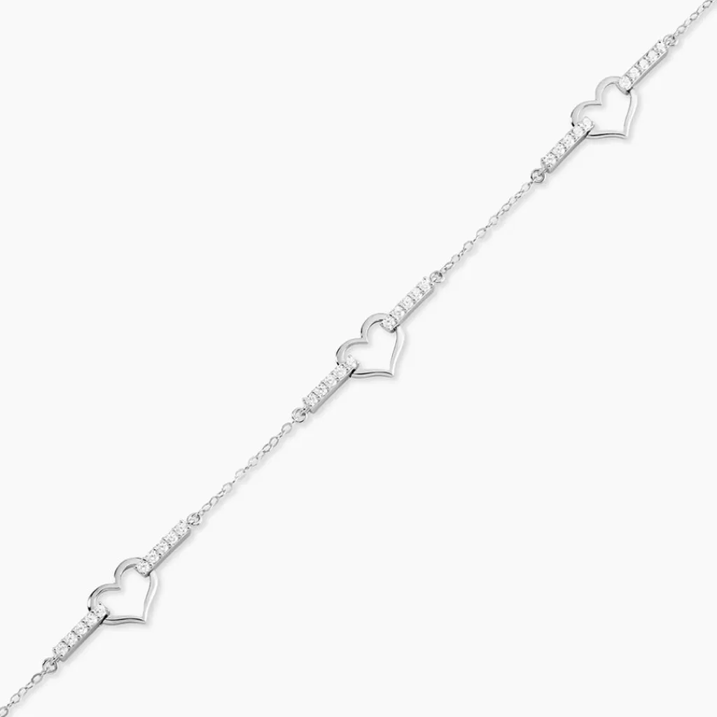 Bracelet Argent 925/1000 triple Oxydes De Zirconium Coeur Triple 19.5cm