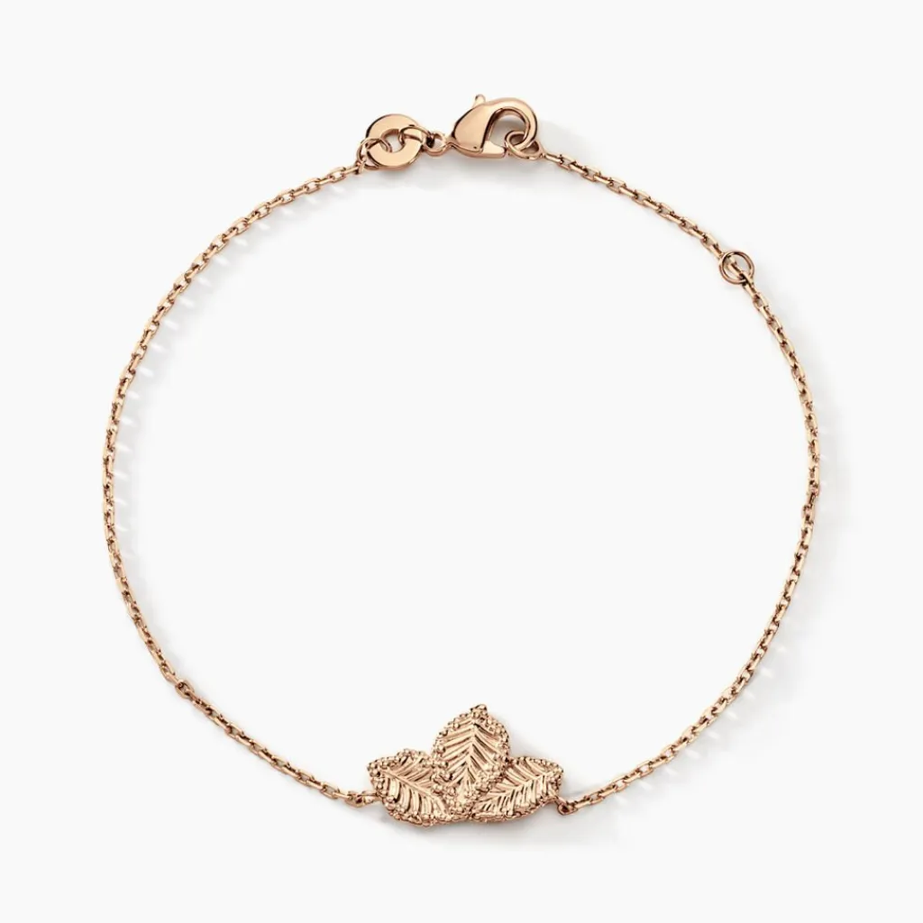 Bracelet Plaqué Or Jaune Feuilles Maille Jaseron 16+2cm