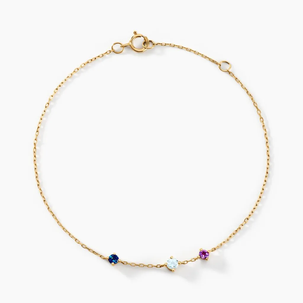 Bracelet Or Jaune 375/1000 Topaze Bleu Sky Topaze London Blue Amethyste Rond Serti 4 Griffes Maille Forçat 16+2cm
