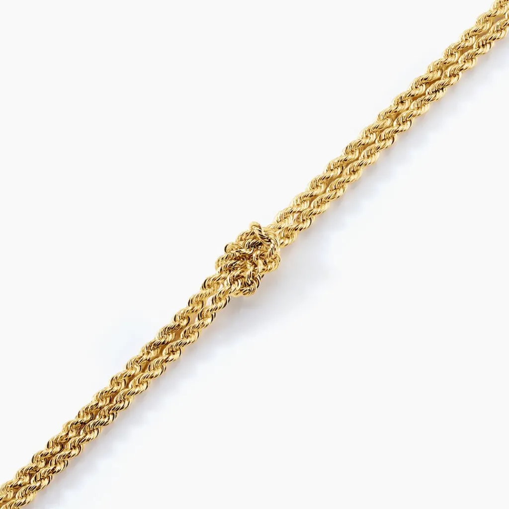 Bracelet Or Jaune 750/1000 Double Chaine Ajouree Maille Corde 18cm Largeur 2.8mm