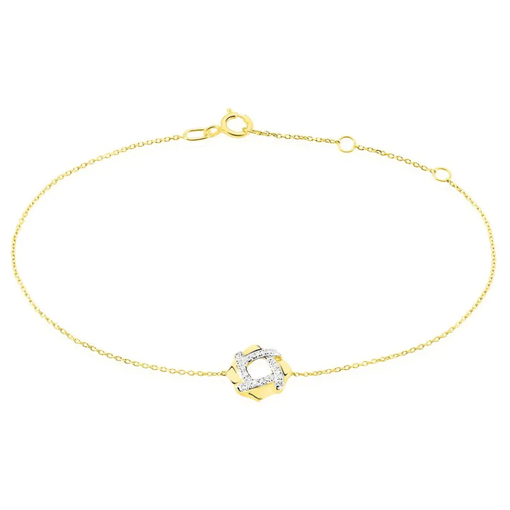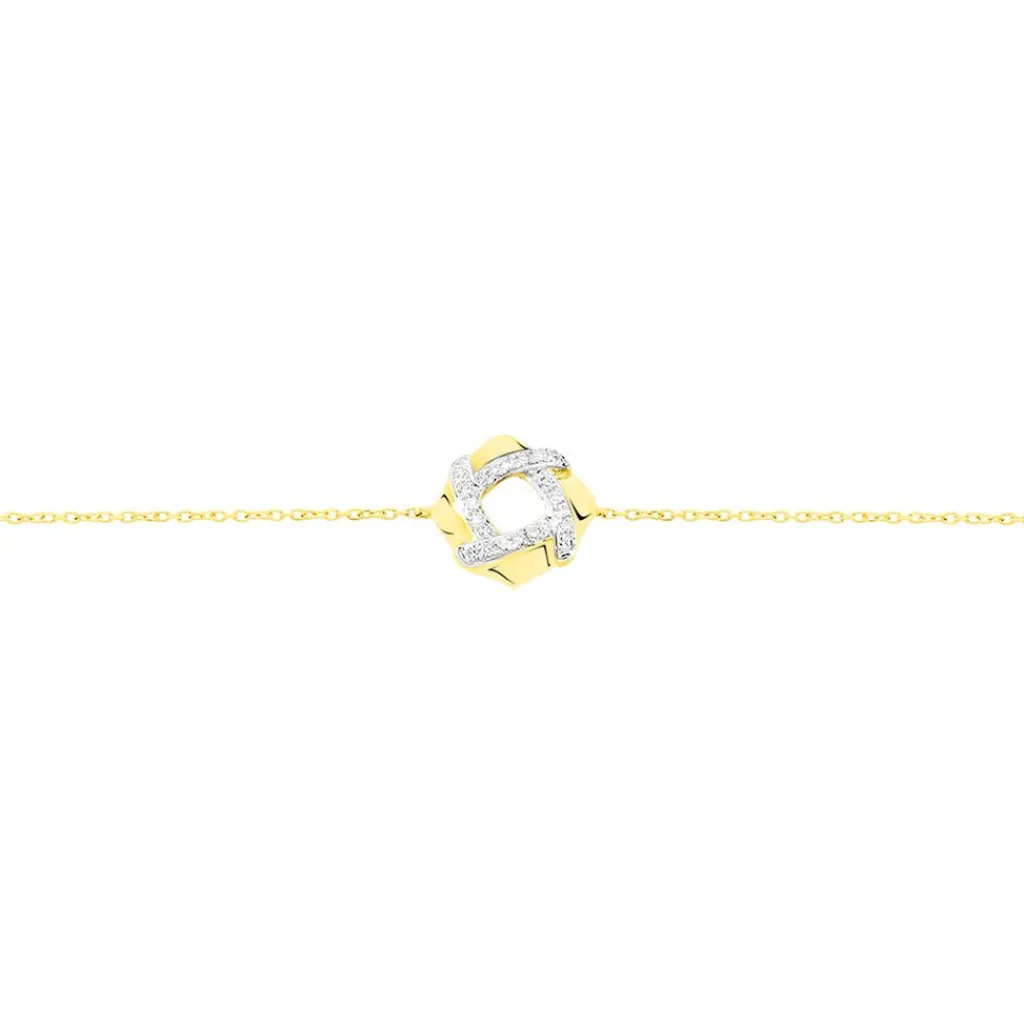 Bracelet Or Jaune 375/1000 Motif Cercle Ajoure Pavage Diamant 18.5cm