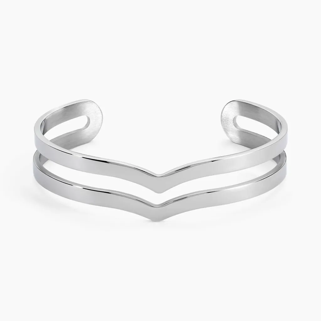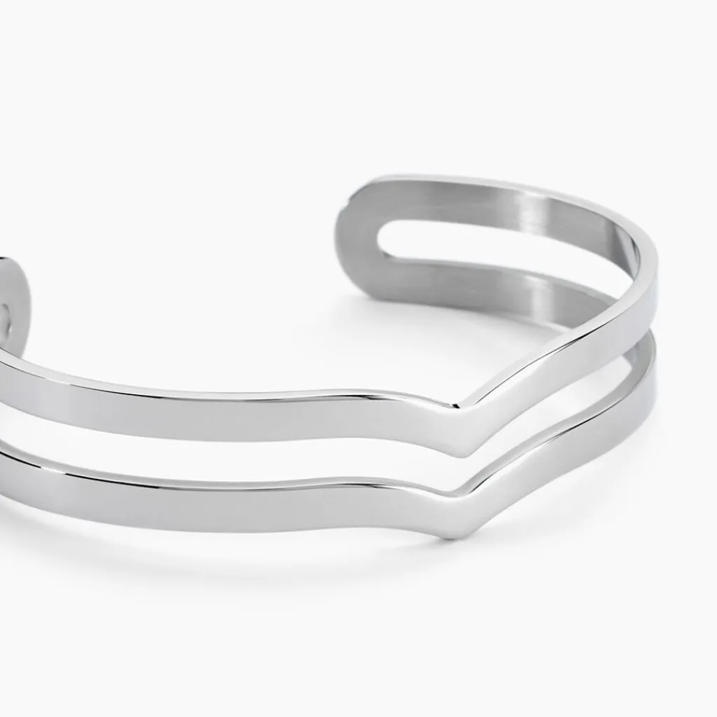 Bracelet Jonc Acier Blanc Ouvert Forme Double Aile De Mouette Ajouree