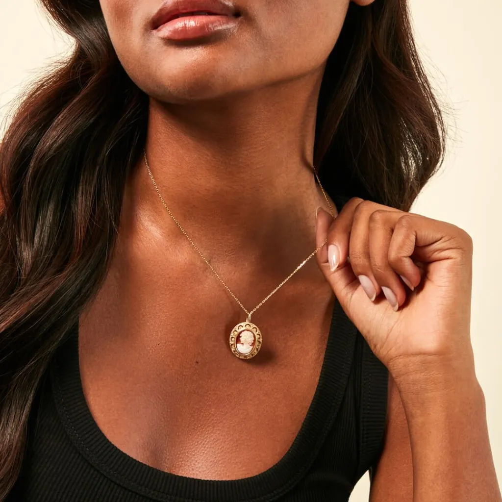Broche Or Jaune 375/1000 Camee Oval Orange Effet Cisele Longueur 2,25Cm