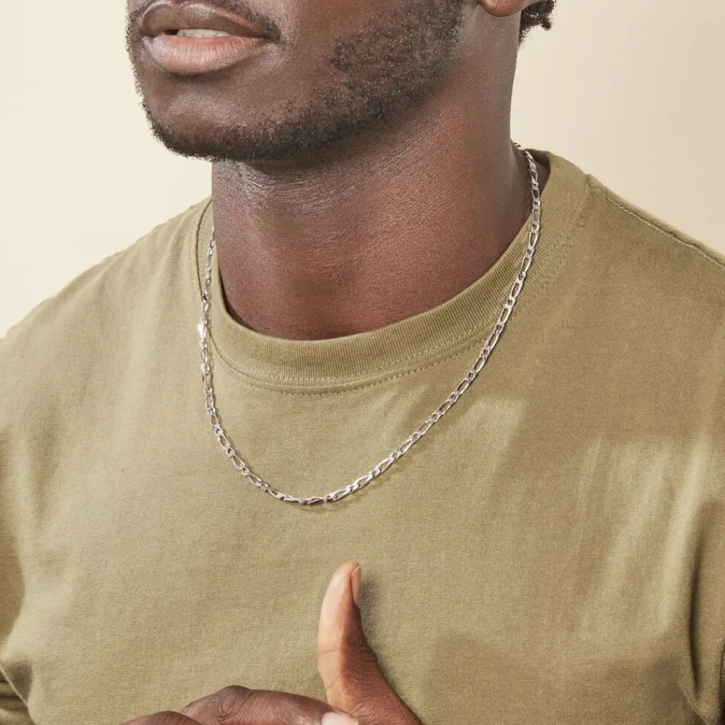 Collier Argent Blanc 925/1000 Maille Alternee 1-1 5.5mm 60cm