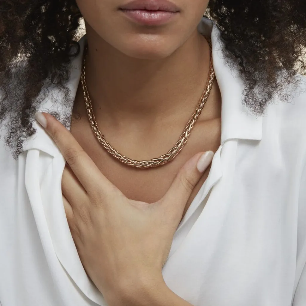 Collier Chute Plaque Or Jaune Maille Palmier 4/7mm 45cm