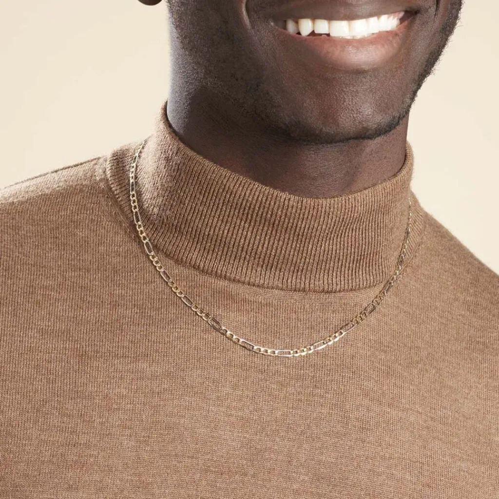 Collier Or Bicolore 375/1000 Maille Alternée 1/3 Largeur 3.75mm 70cm