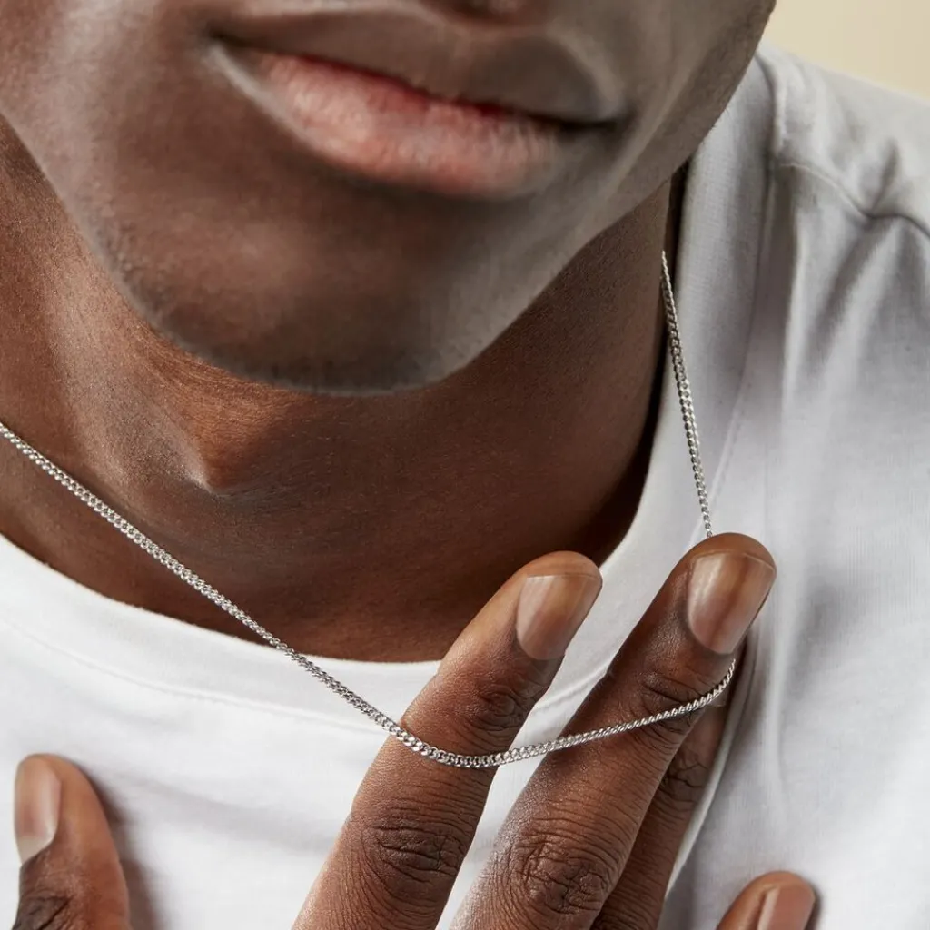 Chaîne Argent Blanc 925/1000 Maille Gourmette Largeur 2.1mm 50cm
