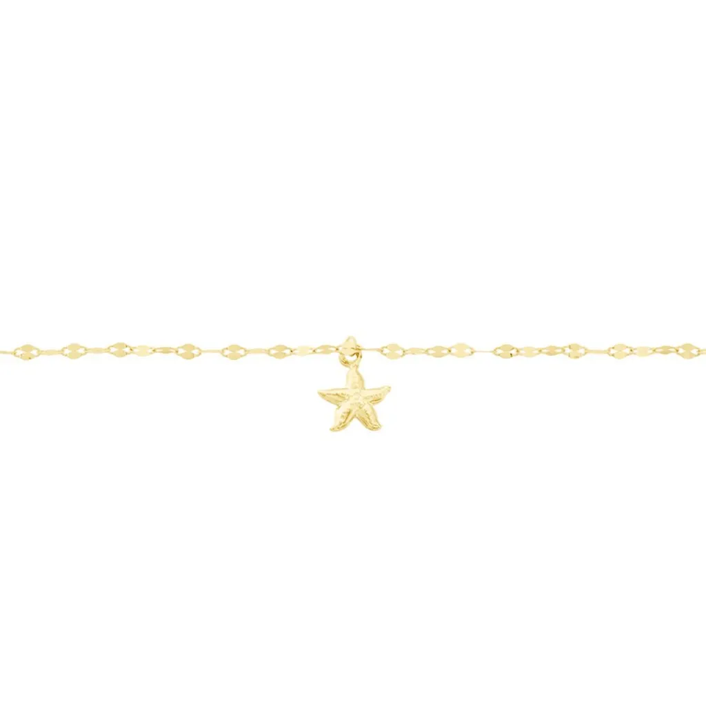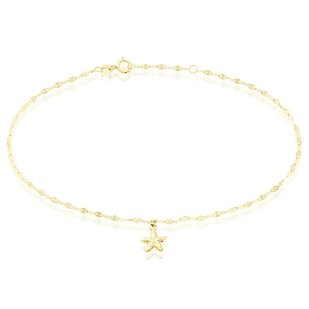 Chaine De Cheville Or Jaune 375/1000 Etoile De Mer Maille Lumina 22+2cm