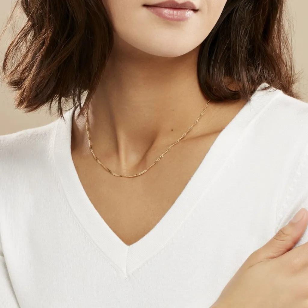 Collier Or Jaune 375/1000 Maille Singapour Evidée 1.9mm 45cm