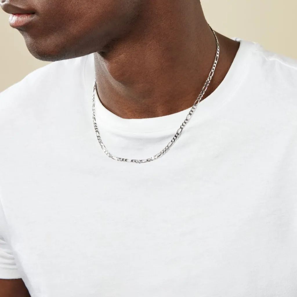 Collier Argent Blanc 925/1000 Maille Alternee 1/3 Epaisseur 3.8mm 50cm