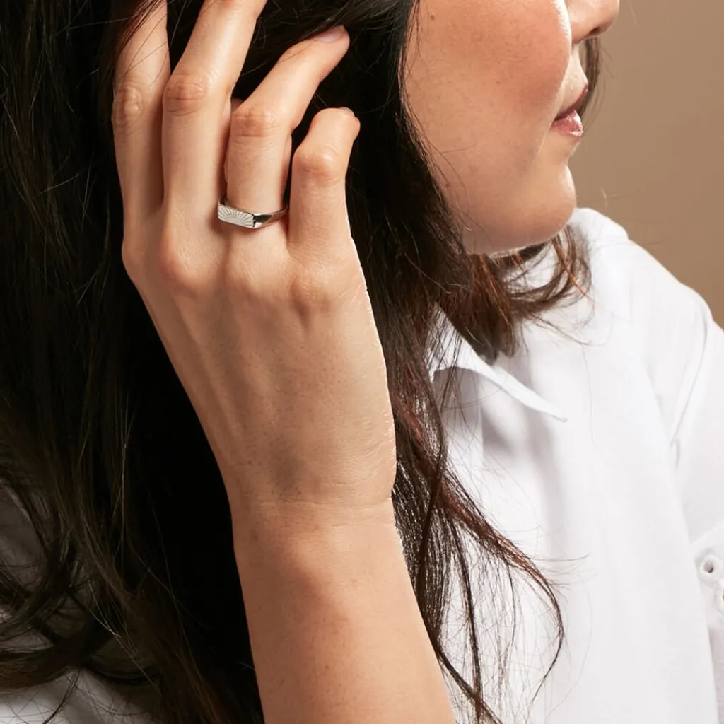 Chevalière Argent Blanc 925/1000 Plateau Rectangulaire Strié