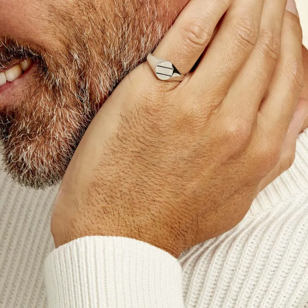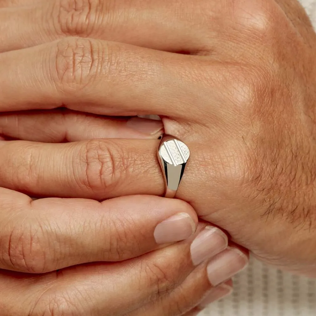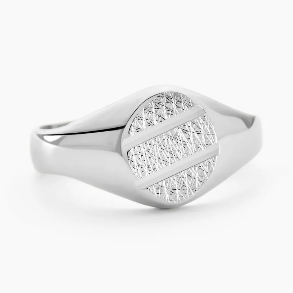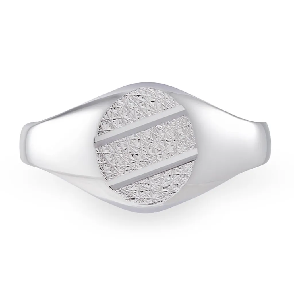 Chevaliere Argent Blanc 925/1000 Plateau Rond Cisele